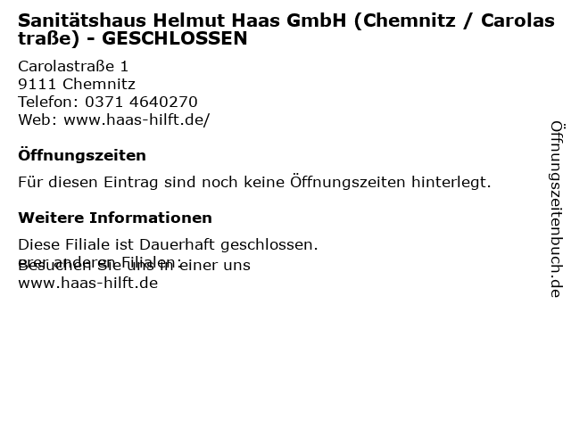 | Sanitätshaus Helmut Haas GmbH (Chemnitz / Carolastraße) - GESCHLOSSEN anrufen | |
