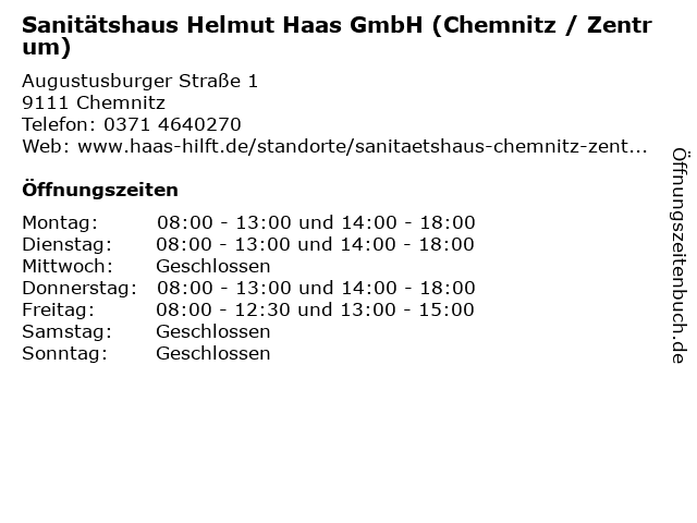 Branchen & Suchbegriffe zu Sanitätshaus Helmut Haas GmbH (Chemnitz / Zentrum):haas, helmut, sanitätshaus, zentrum |