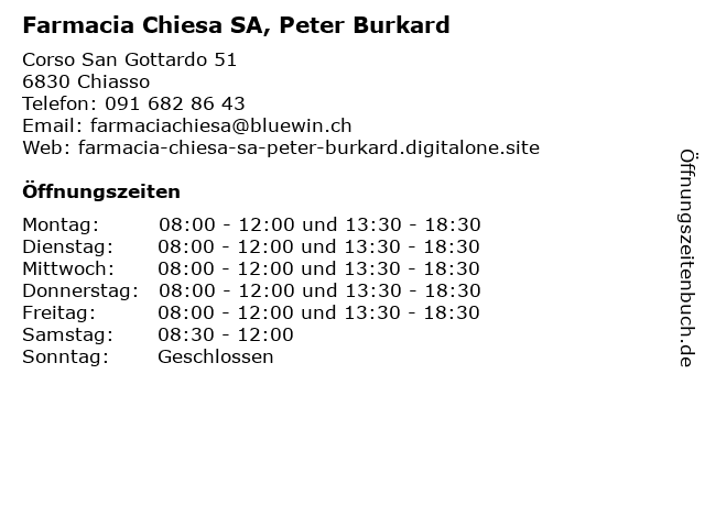 Branchen & Suchbegriffe zu Farmacia Chiesa SA, Peter Burkard:burkard, chiesa, farmacia, mobilitätshilfen, peter, sa |
