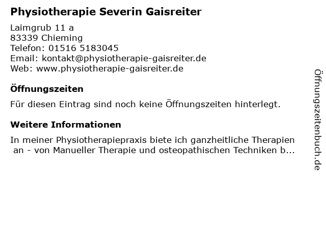 | Physiotherapie Severin Gaisreiter anrufen | |