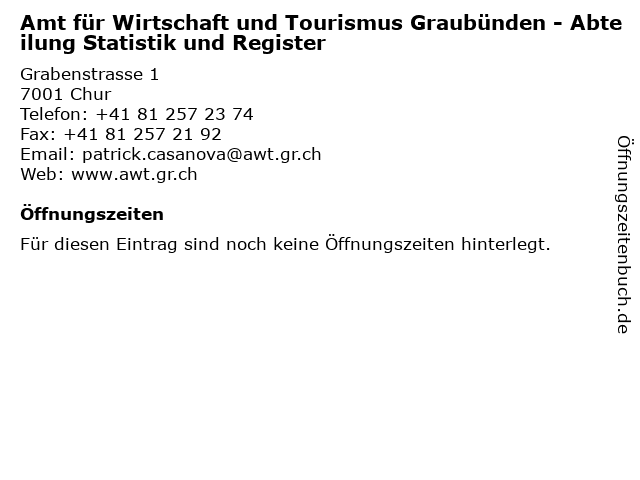 | Amt für Wirtschaft und Tourismus Graubünden - Abteilung Statistik und Register anrufen | |