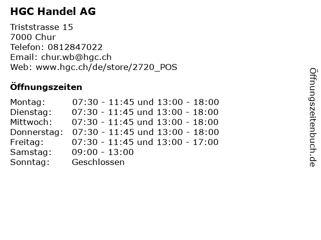 | Öffnungszeiten HGC Handel AG in Chur anzeigen | |