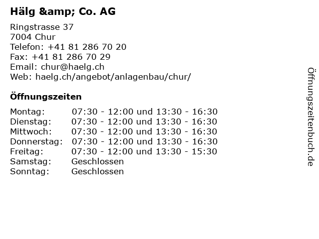| Öffnungszeiten Hälg & Co. AG in Chur anzeigen | |