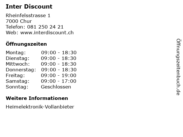 | Öffnungszeiten Inter Discount in Chur anzeigen | |