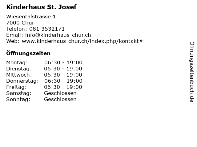 | Öffnungszeiten Kinderhaus St. Josef in Chur anzeigen | |
