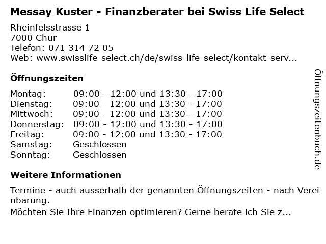 Branchen & Suchbegriffe zu Messay Kuster - Finanzberater bei Swiss Life Select:bei, berufshaftpflichtversicherung, berufsunfähigkeitsversicherung, finanzberater, finanzplanung, gebäude- und hausratsversicherung, investmentservice, kuster, lebensversicherung, life, messay, mietrechtsschutzversicherung, pflegeversicherung, select, swiss, versicherungsberater |