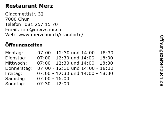 | Öffnungszeiten Restaurant Merz in Chur anzeigen | |