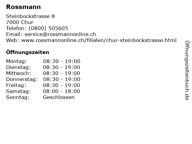 | Öffnungszeiten Rossmann in Chur anzeigen | |