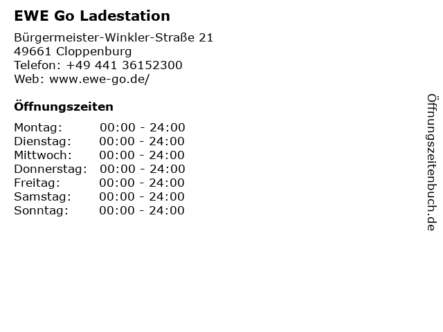 Öffnungszeiten EWE Go Ladestation