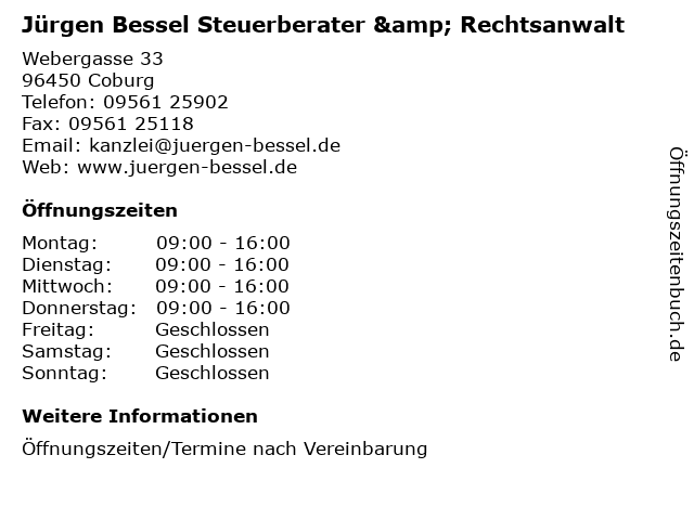 Branchen & Suchbegriffe zu Jürgen Bessel Steuerberater & Rechtsanwalt:bessel, coburg, jürgen, jürgen bessel, rechtsanwalt, steuerberater |
