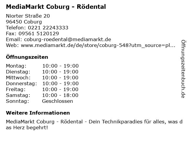 Öffnungszeiten MediaMarkt Coburg - Rödental in Coburg anzeigen | |