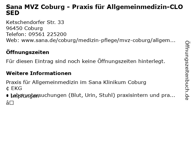 | Sana MVZ Coburg - Praxis für Allgemeinmedizin-CLOSED anrufen | |