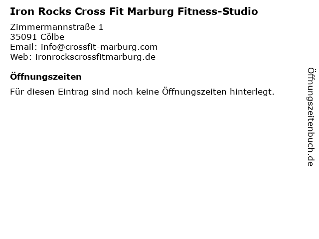 | Öffnungszeiten Iron Rocks Cross Fit Marburg Fitness-Studio in Cölbe anzeigen | |