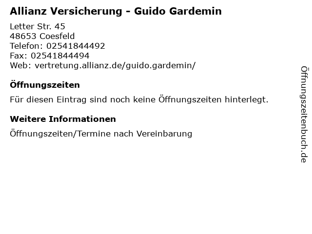 | Allianz Versicherung - Guido Gardemin anrufen | |
