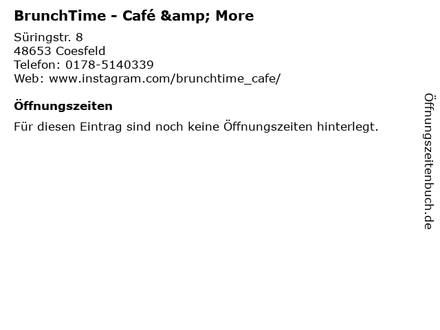 | Öffnungszeiten BrunchTime - Café & More in Coesfeld anzeigen | |