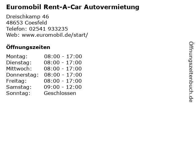 Euromobil Rent-A-Car Autovermietung in Coesfeld: Telefonnummer, Öffnungszeiten und Adresse