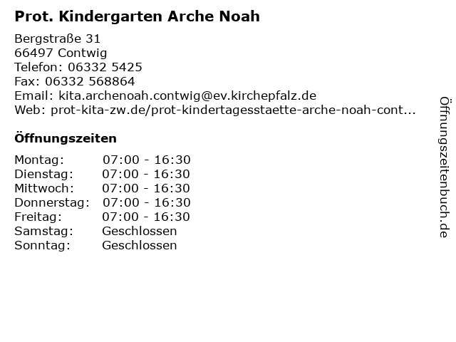 | Öffnungszeiten Prot. Kindergarten Arche Noah in Contwig anzeigen | |