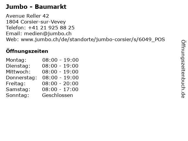 | Öffnungszeiten Jumbo - Baumarkt in Corsier-sur-Vevey anzeigen | |