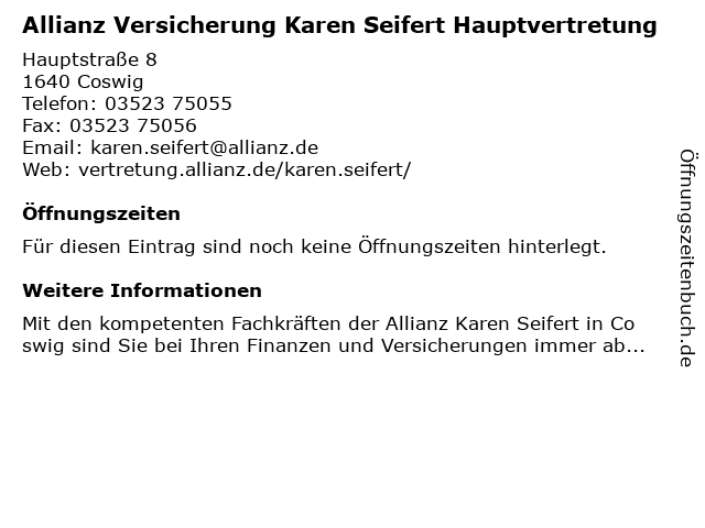 | Allianz Versicherung Karen Seifert Hauptvertretung anrufen | |