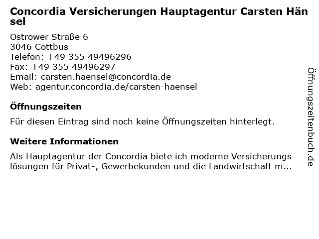 | Concordia Versicherungen Hauptagentur Carsten Hänsel anrufen | |