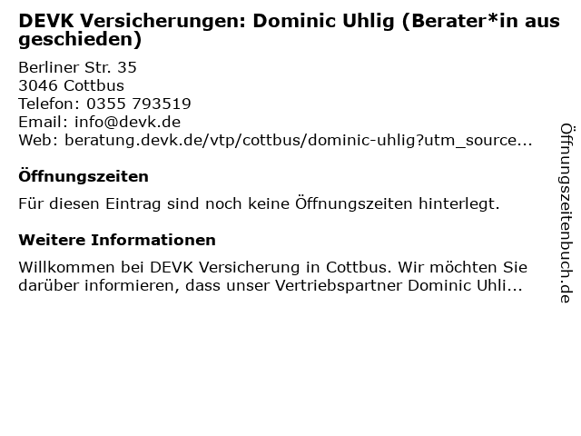| DEVK Versicherungen: Dominic Uhlig (Berater*in ausgeschieden) anrufen | |