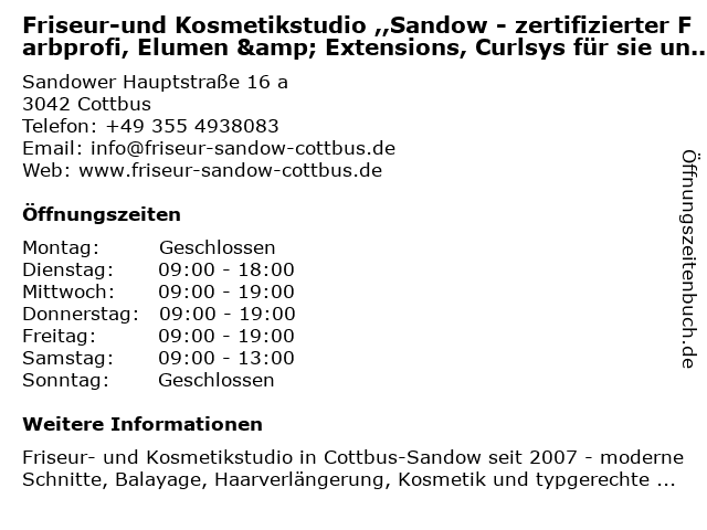 Branchen & Suchbegriffe zu Friseur-und Kosmetikstudio ,,Sandow - zertifizierter Farbprofi, Elumen & Extensions, Curlsys für sie und ihn:balayage, brautfrisuren, curlsys, damenfriseur, dauerhafte haarglättung, elumen, extensions, farbprofi, friseur, friseur in cottbus, friseur sandow, friseure, friseursalon, frisurenstyling, haarfarbe, haarschnitt, haarverdichtung, haarverlängerung, herrenfriseur, hochsteckfrisuren, ihn, kosmetiksalon, kosmetiksalon in cottbus, kosmetikstudio, kurzhaarfrisur, quikky schnitt, sandow, sie, zertifizierter |