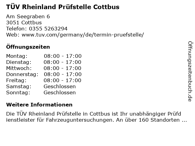 Branchen & Suchbegriffe zu TÜV Rheinland Prüfstelle Cottbus:prüfstelle, rheinland, tüv |