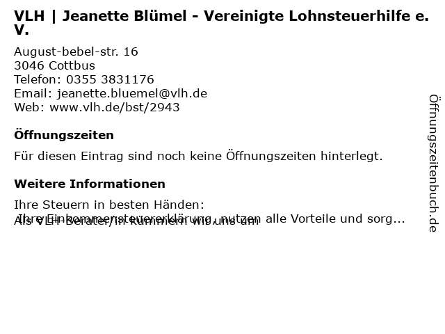 | VLH | Jeanette Blümel - Vereinigte Lohnsteuerhilfe e.V. anrufen | |