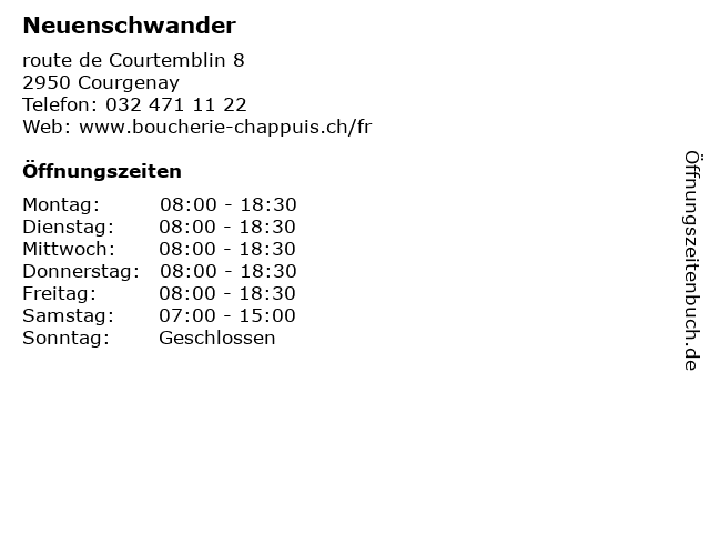 | Öffnungszeiten Neuenschwander in Courgenay anzeigen | |