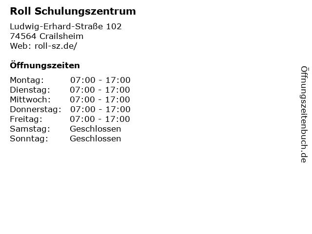 | Öffnungszeiten Roll Schulungszentrum in Crailsheim anzeigen | |