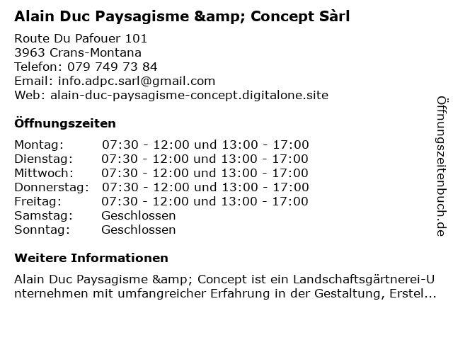 Öffnungszeiten Alain Duc Paysagisme & Concept Sàrl