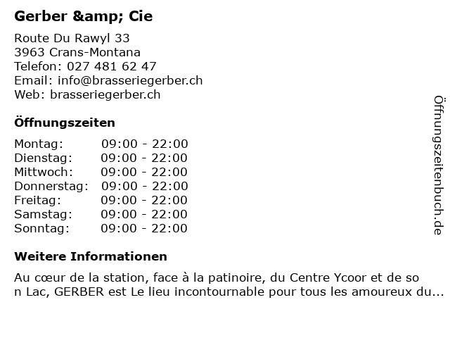 | Öffnungszeiten Gerber & Cie in Crans-Montana anzeigen | |