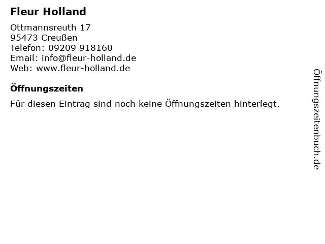| Öffnungszeiten Fleur Holland in Creußen anzeigen | |