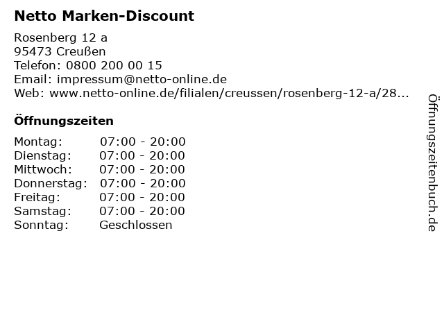 | Öffnungszeiten Netto Marken-Discount in Creußen anzeigen | |