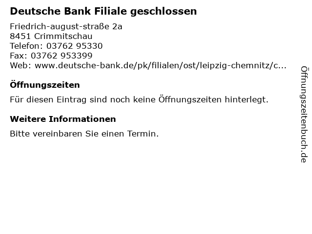 | Deutsche Bank Filiale geschlossen anrufen | |