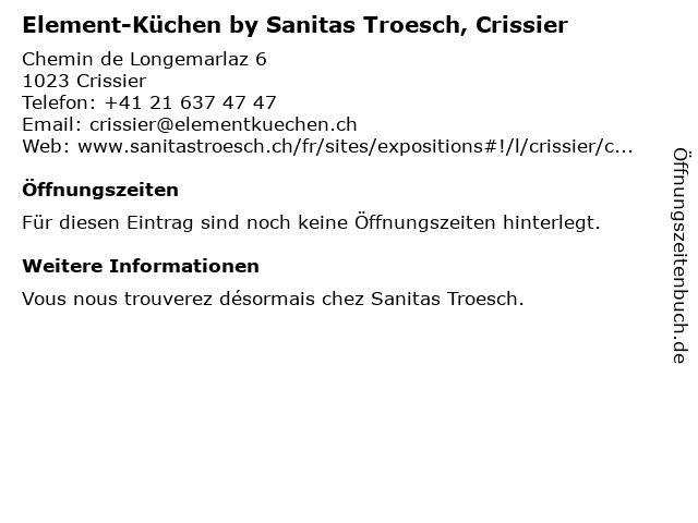 | Element-Küchen by Sanitas Troesch, Crissier anrufen | |