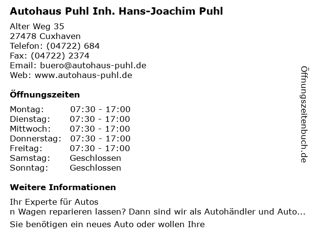 Branchen & Suchbegriffe zu Autohaus Puhl Inh. Hans-Joachim Puhl:anhänger mieten, anhängervermietung, autoglas-service, autohaus, autoscheibenaustausch, firmenwagen, geschäftsfahrzeugen, glasservice, hans, hans-joachim, jahreswagen, joachim, karosserieinstandsetzung, lkw-vermietung, neuwagen, pkw-vermietung, puhl, reisemobile, reisemobilvermietung, unfallabwicklung, wohnmobile |