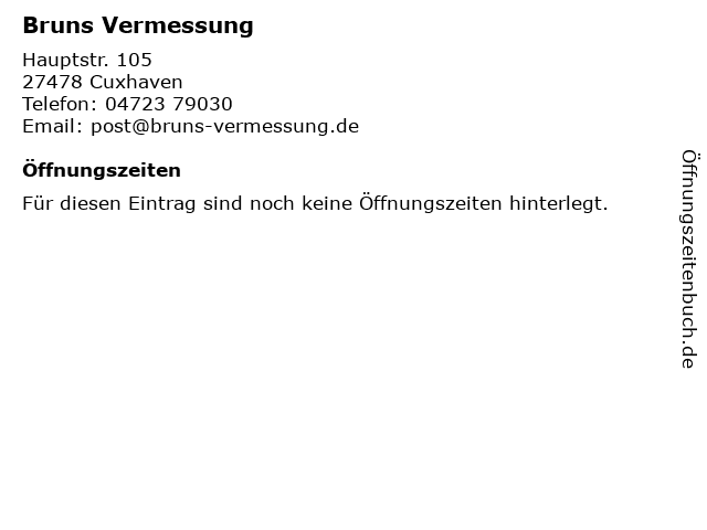 | Öffnungszeiten Bruns Vermessung in Cuxhaven anzeigen | |