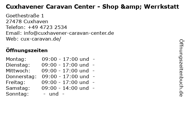 Öffnungszeiten Cuxhavener Caravan Center - Shop & Werrkstatt