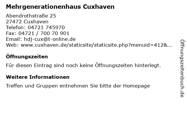 | Mehrgenerationenhaus Cuxhaven anrufen | |