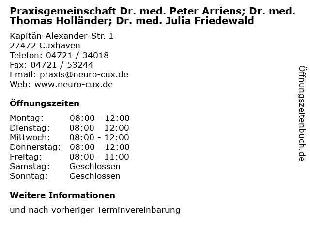 Branchen & Suchbegriffe zu Praxisgemeinschaft Dr. med. Peter Arriens; Dr. med. Thomas Holländer; Dr. med. Julia Friedewald:aep, arriens;, dr., eeg, emg, eng, friedewald, holländer;, julia, med., peter, praxisgemeinschaft, thomas, vep |
