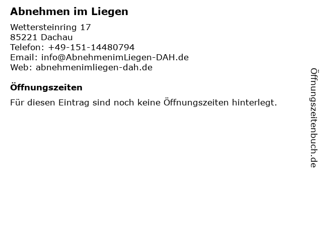 | Öffnungszeiten Abnehmen im Liegen in Dachau anzeigen | |