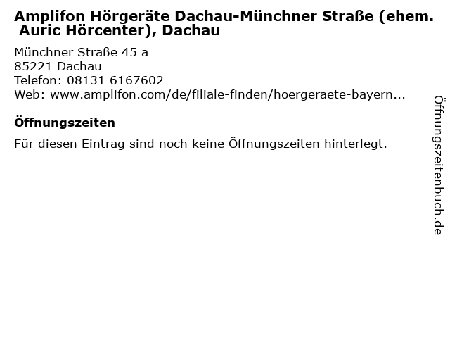 | Amplifon Hörgeräte Dachau-Münchner Straße (ehem. Auric Hörcenter), Dachau anrufen | |