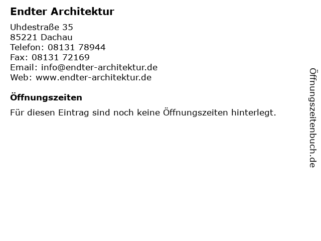 | Öffnungszeiten Endter Architektur in Dachau anzeigen | |
