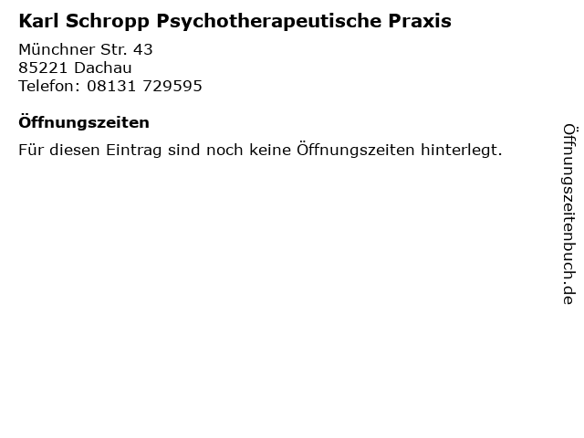 | Karl Schropp Psychotherapeutische Praxis anrufen | |