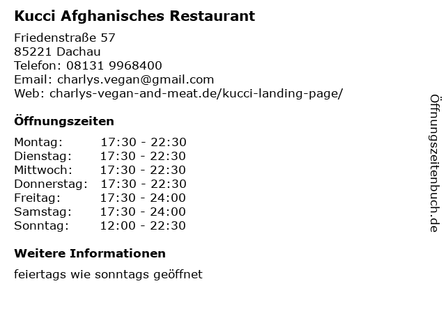 | Öffnungszeiten Kucci Afghanisches Restaurant in Dachau anzeigen | |