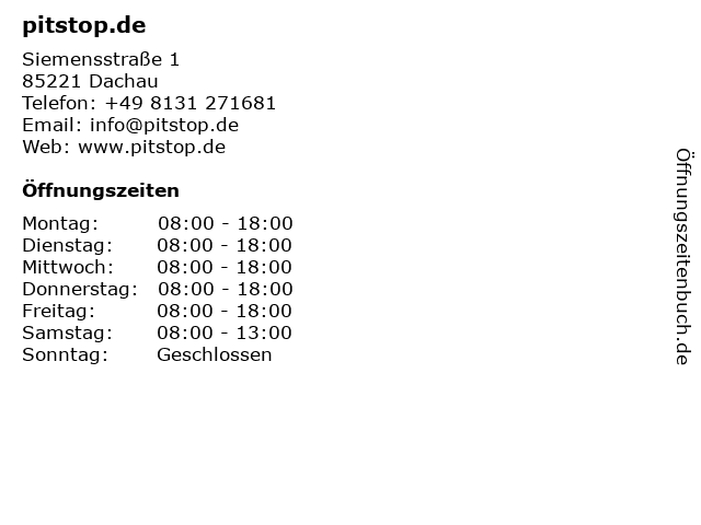 | Öffnungszeiten pitstop.de in Dachau anzeigen | |