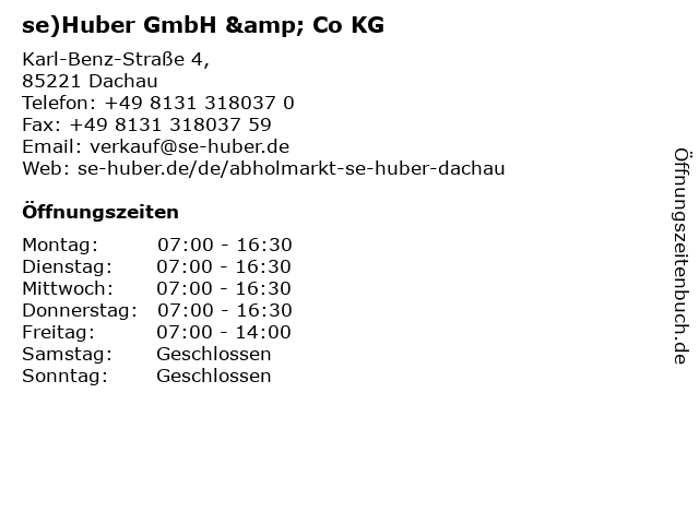 | Öffnungszeiten se)Huber GmbH & Co KG in Dachau anzeigen | |