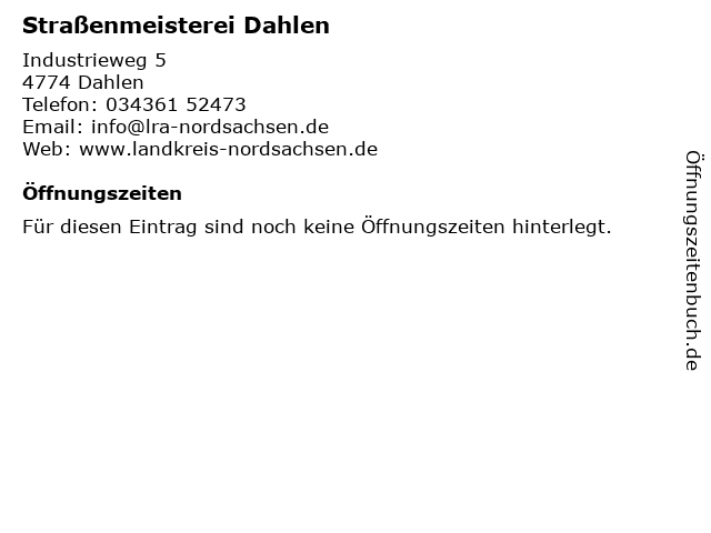 | Öffnungszeiten Straßenmeisterei Dahlen in Dahlen anzeigen | |