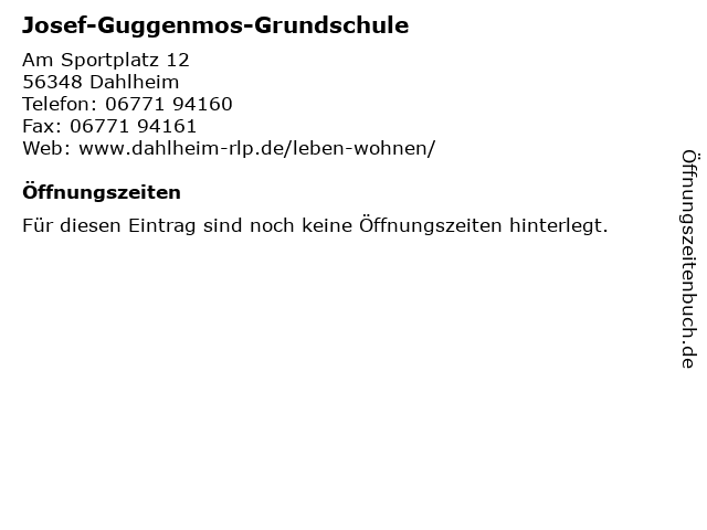 | Öffnungszeiten Josef-Guggenmos-Grundschule in Dahlheim anzeigen | |